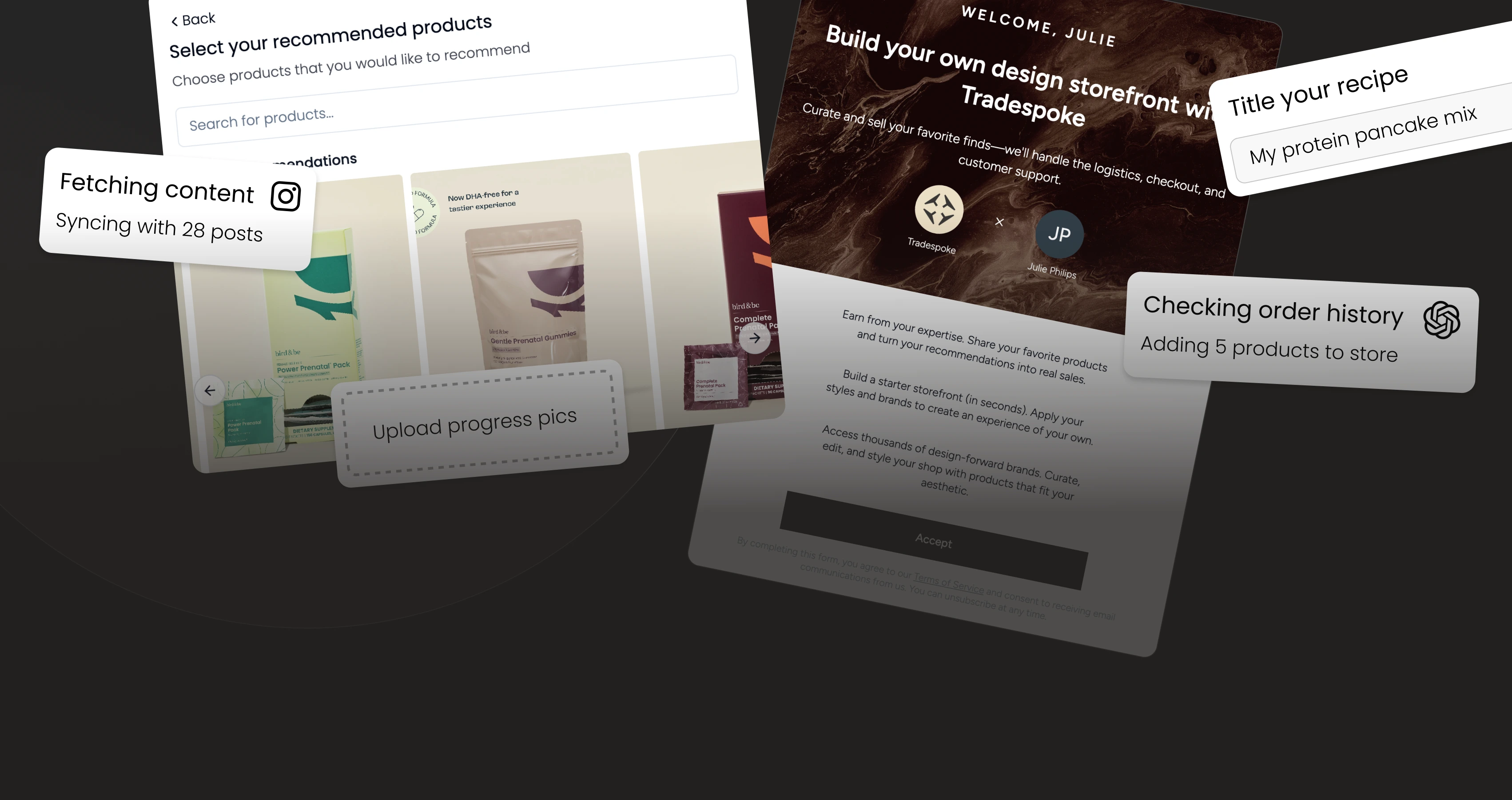 Gather more content & go deeper together. Pull in a creator's existing content, while also giving them space to customize & extent the experience on their own.