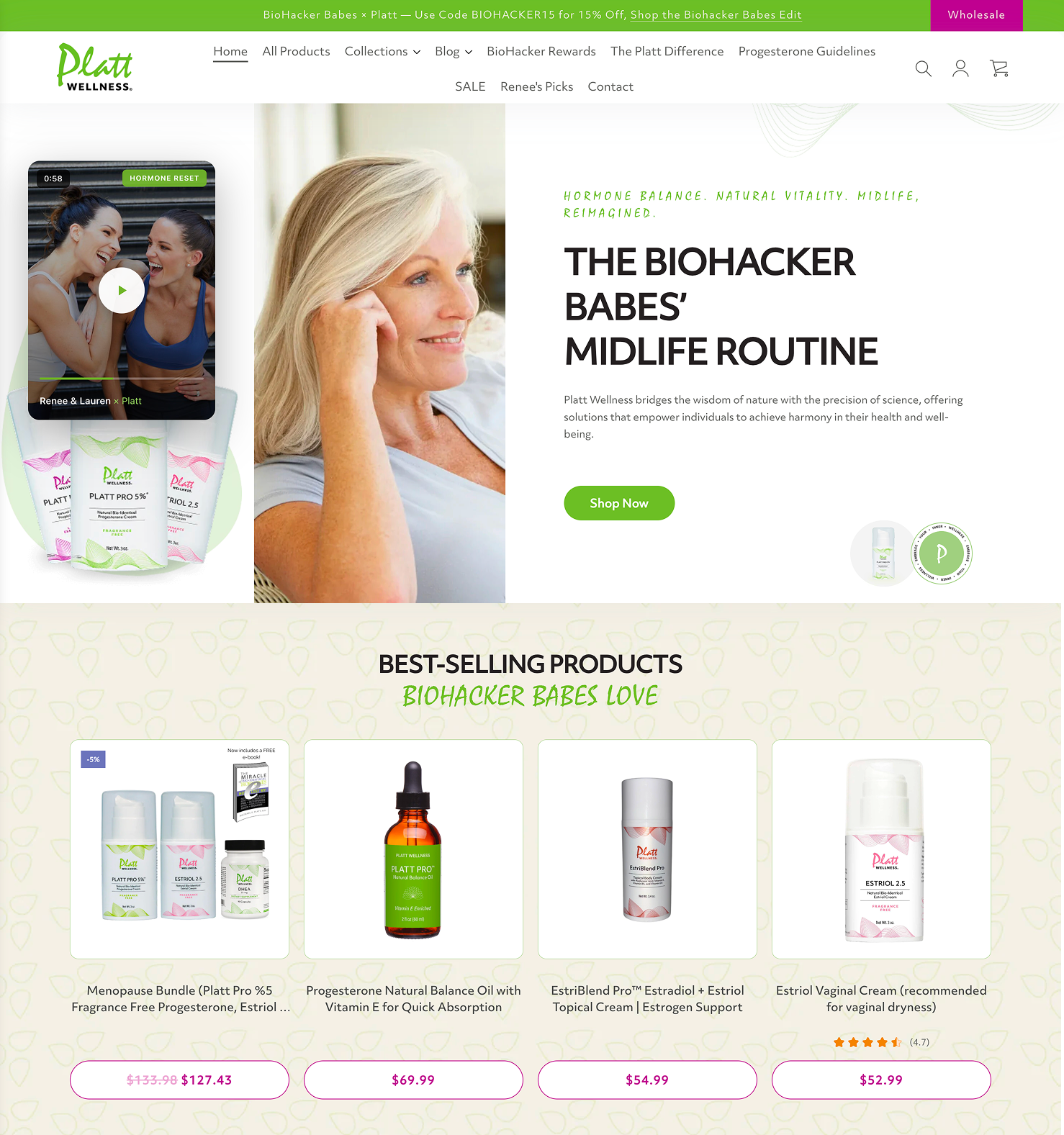 Content creators focused on menopause, perimenopause, and midlife transitions have untapped affiliate potential. They align directly with Platt's core audience and can speak authentically to the need for bio-identical progesterone creams and hormone support.